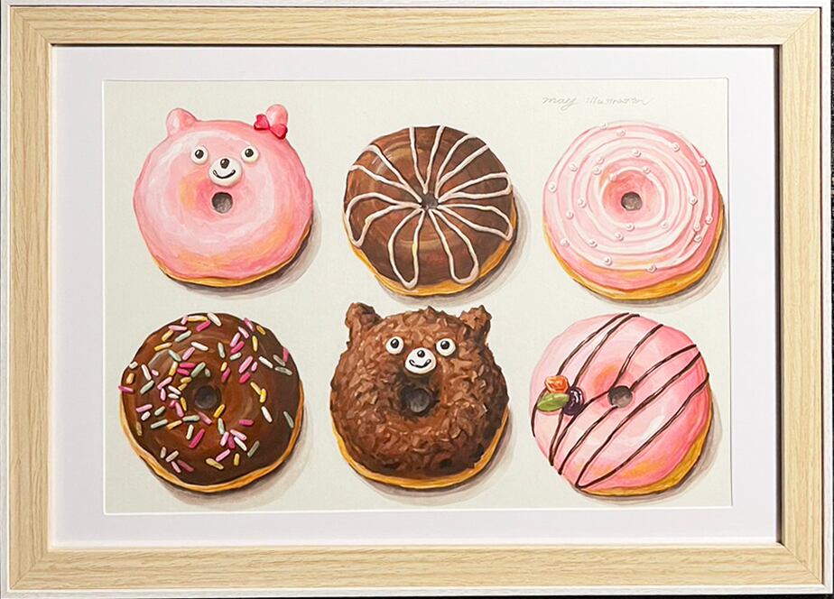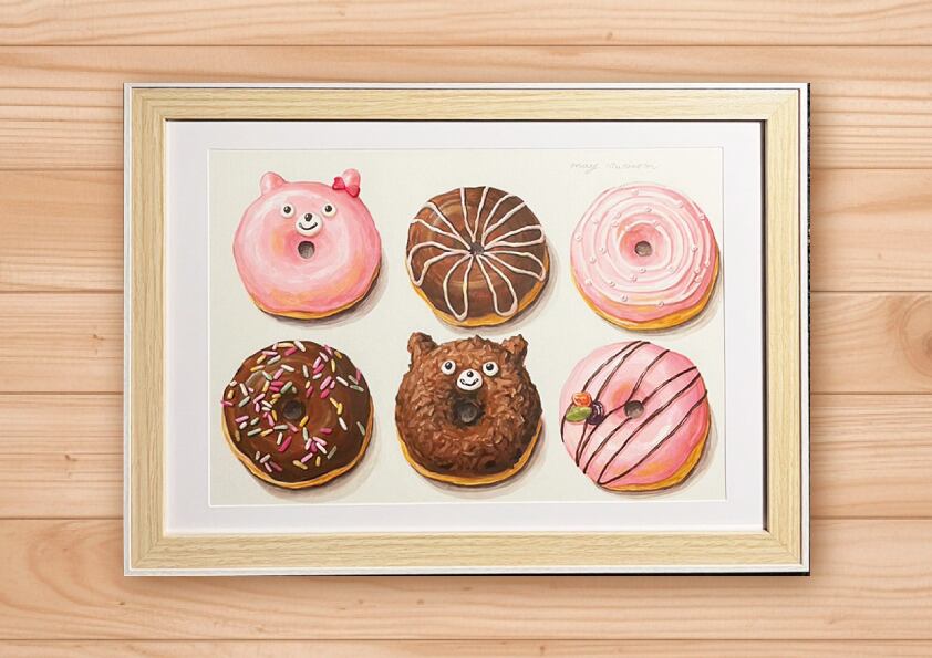 【原画】額付★ 6 cute donuts / B5 original painting